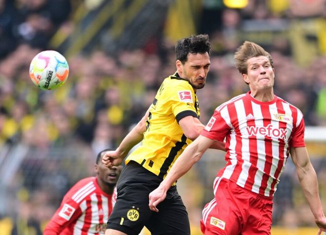 下半场易边再战,吉塞尔曼尝试一脚远射,踢飞了。第61分钟,柏林联合扳平了比分!贝伦斯禁区中路推射球门右下角,球进了!门将一点反应都没有。贝克尔做球做得太舒服了,让贝伦斯能够如此轻松完成进球。双方回到了同一起跑线。之后多特蒙德差一点再次领先,只可惜聚勒的近距离头球攻门顶高了。