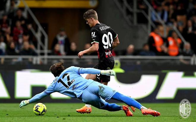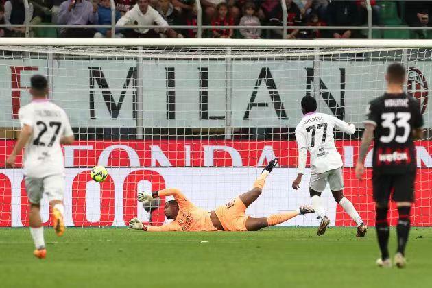 上半场,控球率高达73%的米兰占据绝对优势。卡卢卢长传策动,萨勒马克尔斯前插打入1球,只可惜被半自动越位系统判定探出一丝身位进球无效。随后德凯特拉雷抓住对方回传失误形成单刀,也被门将奋力化解。
