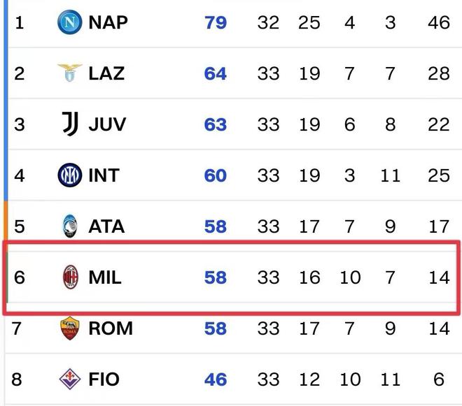 随着22/23赛季进入尾声,意甲争四大战愈发激烈,32轮战罢,第2名的拉齐奥与第7名的亚特兰大只相差6分,恢复罚分的尤文积60分上升到第3位,国米、米兰、罗马同积57分排名4—6位。本轮对阵深陷降级区的克雷莫内塞,米兰3分志在必得。