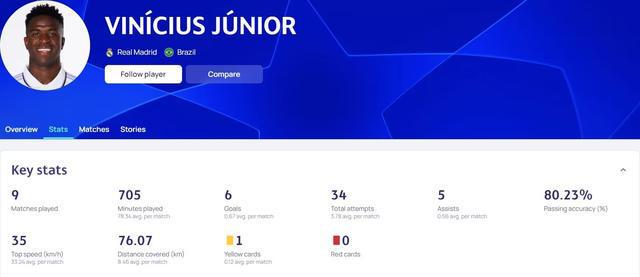 本场比赛过后,在欧足联官网的球员个人数据中,维尼修斯的个人助攻数也从3次变为5次(阿森西奥的破门也来自维尼修斯的助攻)。