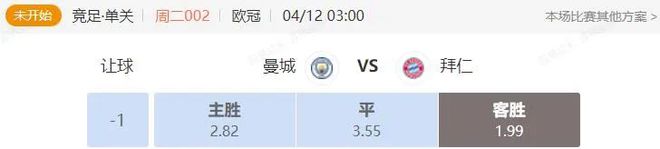 此役机构给出的数据,曼城从礼让2档上升到礼让3档,两队过去的10次交手,各自取得5场胜利,难分上下。毫无疑问,本场比赛曼城是大热,但长达八场的连胜,肯定会给球员们造成一定心理压力。相反拜仁就显得轻装上阵,虽然他们有不少重要球员伤缺,但胜在他们有一位在近期曾拿到过欧冠冠军的教练图赫尔,加上他对于曼城也非常熟悉了解,所以此役不妨看好拜仁能在客场全身而退。