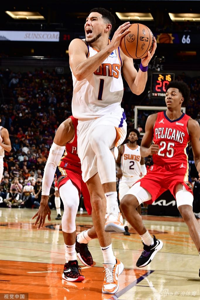 [NBA常规赛]鹈鹕100-112太阳,2021年11月3日,美国,21/22NBA常规赛,新奥尔良鹈鹕100-112菲尼克斯太阳。克里斯-保罗14分18助攻,德文-布克18分,尤纳斯-瓦兰丘纳斯24…