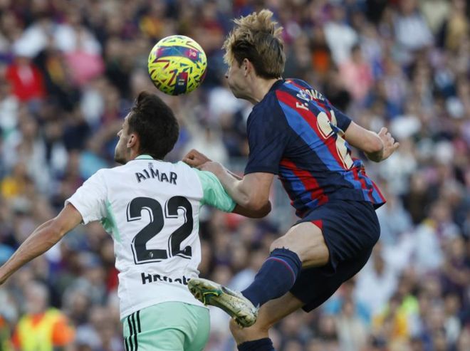具体到比赛中,第10分钟,巴尔德左路内切似传似射,同时莱万多夫斯基插上希望完成连线,可惜艾托尔-费尔南德斯主动出击没收了皮球。第26分钟,弗朗基-德容中路送出直塞,佩德里得球形成单刀,而为了破坏此次攻势,埃兰多上手拉倒佩德里,最终被裁判直红罚下场。
