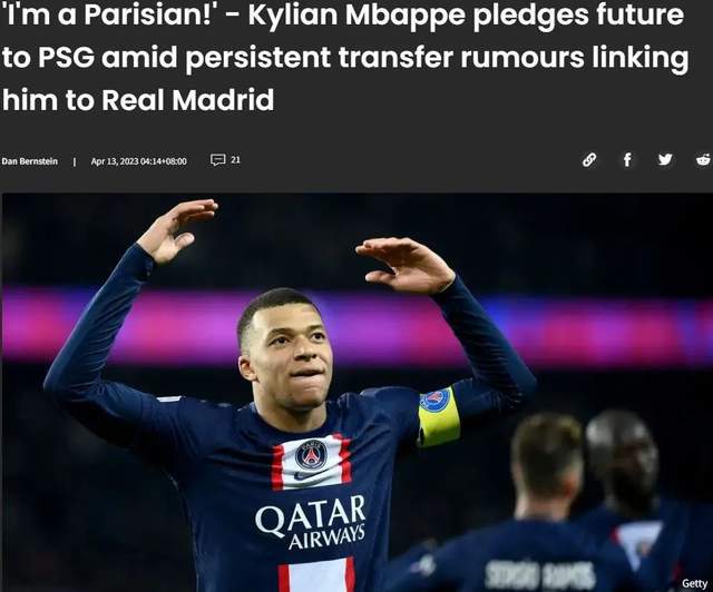 尽管传闻依然很多,但姆巴佩近日接受采访时暗示他不打算在今夏离开巴黎。
