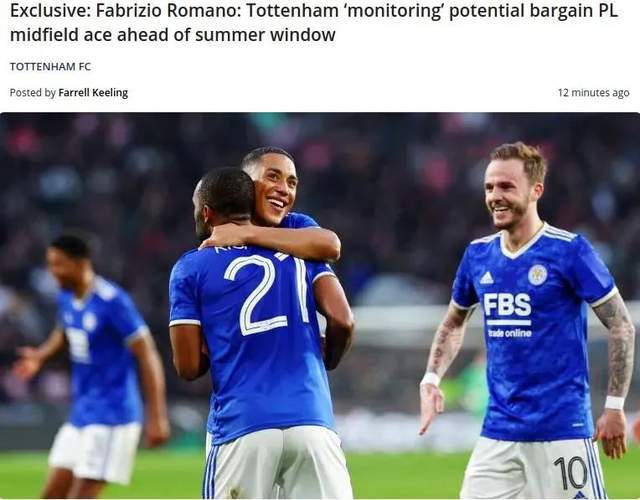 罗马诺在洞察越位的专栏中表示,热刺正在关注莱斯特城中场麦迪逊。