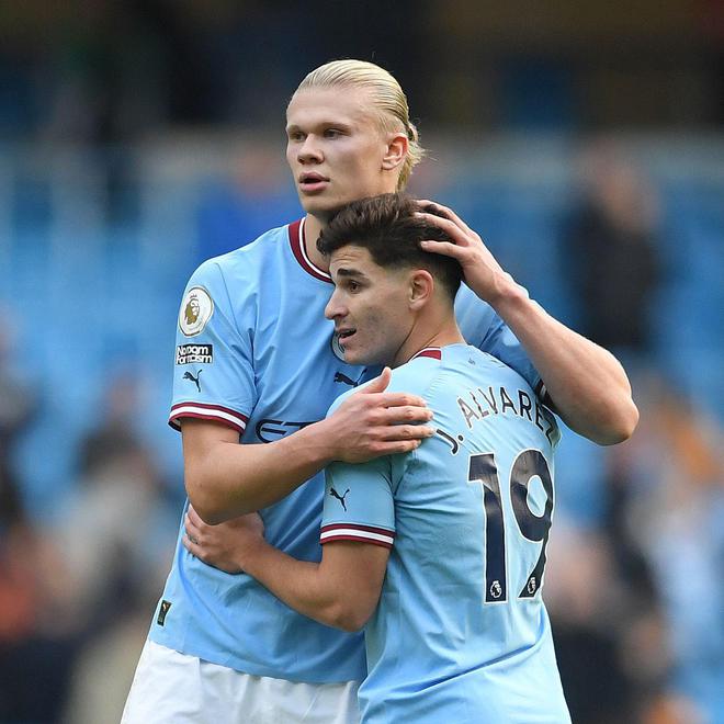 本赛季的曼城依然是英超联赛进攻火力最强的球队,在30场比赛当中已经打进了78粒进球,而队内进球数超过5球的球员都已经有5人,分别是打进了32粒进球的头号射手哈兰德,以及打进9球的福登、打进7球的阿尔瓦雷斯、打进5球的德布劳内和格拉利什。在这5位球员当中,阿尔瓦雷斯和其他人不同,他是唯一的替补球员,也是首发出场次数最少的球员,仅仅首发出场了7场比赛。