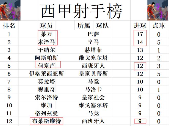 射手榜方面,前十没有变化,莱万17球领跑,本泽马3球之差紧追,于纳尔13球排在第3。阿斯帕斯,何塞卢,伊格莱西亚斯12球并列第4。西班牙人有2人位列前十,但都还无法阻止球队下滑。