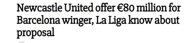 有消息称,阿森纳、热刺和纽卡斯尔都有兴趣引进拉菲尼亚,但似乎是纽卡斯尔最先行动,他们已经向巴萨报价8000万欧元。