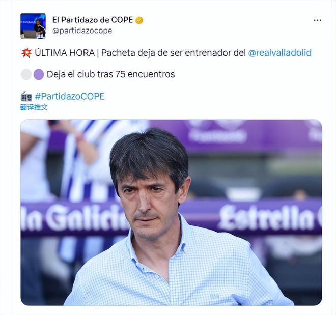 在被皇马6-0血洗后第18小时,西甲球队巴拉多利德官宣解雇主帅帕切塔,双方结束641天的合作。