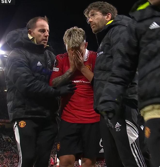 首先是瓦拉内的受伤,红魔的后防大闸无法坚持,只能被换下场。