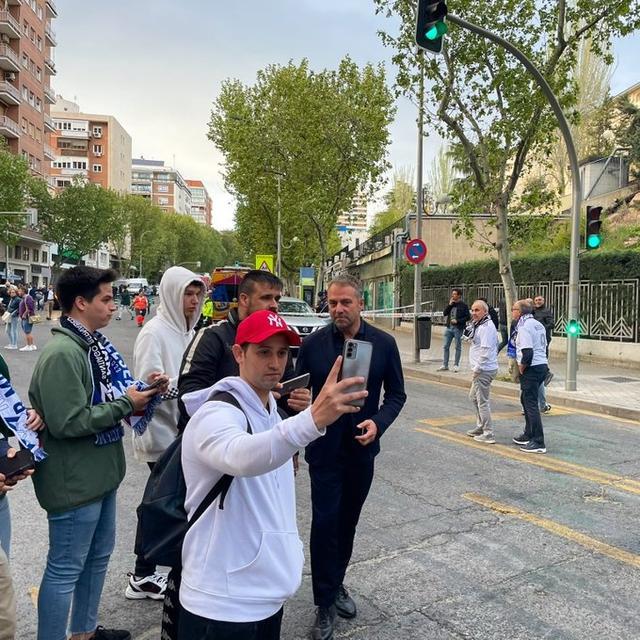 这场比赛也吸引到了德国主帅弗里克前来观战,赛前就有球迷在伯纳乌球场外偶遇弗里克,并与其合影。