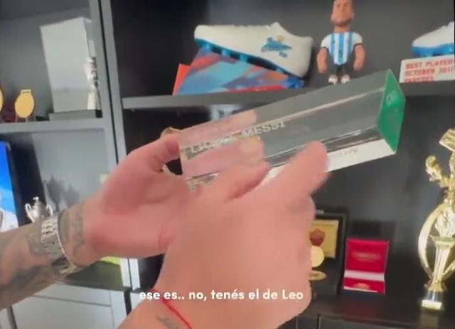 还有梅西2020-2021赛季西甲最佳的奖杯,谈到这个奖杯时,帕雷德斯说道:梅西到巴黎时我拿到的,我问他是否愿意送我,随后他就给了我。