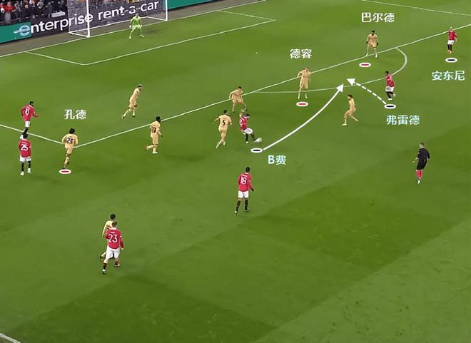 第一球是弗雷德的前插,德容没能跟住,同时巴尔德愣神,缺少有效补救。第二球,则是反弹球到后点,安东尼在巴尔德顶出来前射门得分。