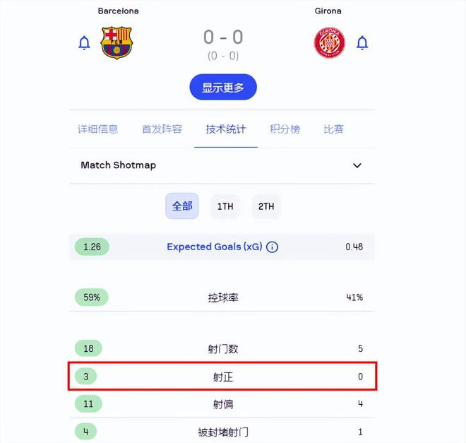 本场赫罗纳就是一样的道理,他们5次射门里,至少有3次是好机会,不过0射正的结果,让巴萨有惊无险。