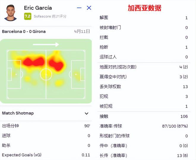 这个球虽然说是孔德落在最后,导致对方不越位。不过赫罗纳前锋卡斯特利亚诺斯的前插,轻松甩开加西亚,依旧暴露出问题。