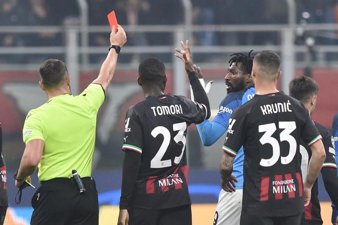 有些被动的AC米兰上半时尾声阶段爆发,第39分钟,AC米兰快速反击,迪亚斯带球狂奔殴打禁区弧顶处横传右侧,莱奥策应传中,迪亚斯前点一晃,后点跟进无人防守的贝纳塞迎球左脚大力爆射,皮球应声入网,AC米兰1:0打破僵局。上半时补时第3分钟AC米兰左侧角球机会,克亚尔后点俯冲头槌攻门,BOOM的一声皮球被横梁挡了出来,那不勒斯逃过一劫。易边再战那不勒斯加强进攻,第49分钟,克瓦拉茨赫利亚禁区弧顶前过顶挑传,埃尔马斯抢点头槌吊门,迈尼昂再次神扑将球托出底线。第73分钟,安吉萨拼抢中抬脚过高踢倒特奥吃到第2张黄牌被罚下场。少1人的那不勒斯尾声阶段也还有机会,只是迪洛伦佐禁区内超级距离打门依然是被迈尼昂扑出,10人那不勒斯也只得接受客场输球的结局。