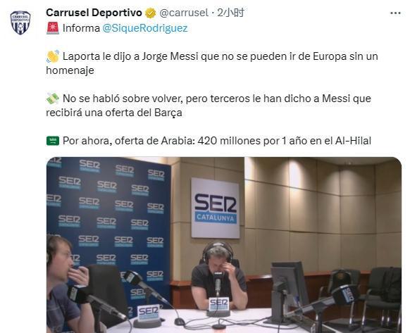 目前巴萨和梅西方面还没有谈论回归,但第三方告诉梅西,他将会收到巴萨报价。