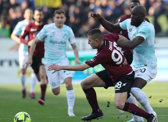 下半场易边再战,萨勒尼塔纳率先进行换人调整,布拉耶-迪亚替补上场,布龙被换下场。第48分钟,巴雷拉在禁区弧顶处大力抽射,皮球狠狠击中立柱弹了出来。萨勒尼塔纳逃过一劫。9分钟后,坎德雷瓦出其不意选择吊射,奥纳纳冷静后退两步后把球托出底线。