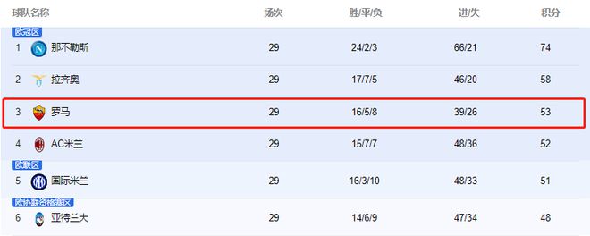 拿到这3分,罗马立即完成了对米兰双雄的超越,升上第三。
