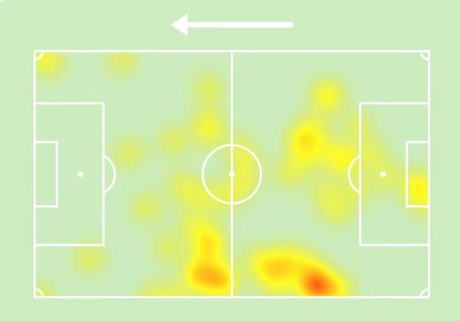 此役,托纳利与克鲁尼奇搭档双后腰,皮奥利赋予托8的主要职责就是在中场的扫荡防守。从跑动热图可以看出,托纳利的防守覆盖面积非常广阔,还重点参与了对左边卫和中后卫的补位防守。