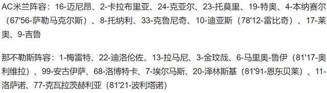 最终,全场比赛结束,AC米兰主场1-0小胜那不勒斯。