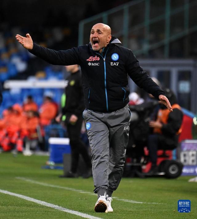 4月15日,那不勒斯队主教练斯帕莱蒂在赛场边指挥。