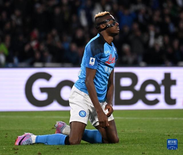 4月15日,那不勒斯队球员奥斯梅恩在比赛中。