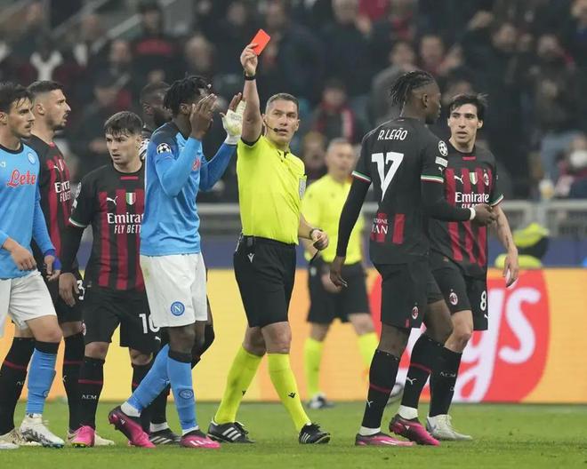 那不勒斯在下半场一度接近崩溃。安吉萨在4分钟之内2次对泰奥犯规,连续吃到两黄下场(第二张黄牌有待商榷),让那不勒斯只能10人作战;金玟哉在几分钟后则因为抗议被警告,并将因此错过双方的次回合对决。主场的情绪越发高涨,可客队反倒在少打一人的不利局势下,终场前连续制造威胁。迪洛伦佐的射门就要飞向球门死角,那不勒斯队长距离自己的第三粒欧冠进球只差一点,可飞翔的迈尼昂阻止了一切。