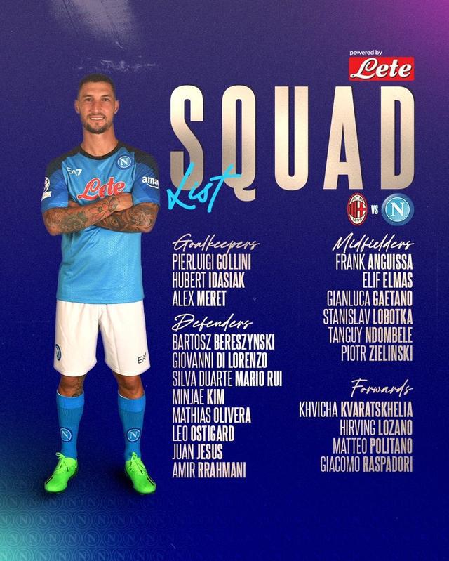 前锋: 克瓦拉茨赫利亚、洛萨诺、波利塔诺、拉斯帕多里