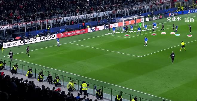 这一次的角球进攻中,那不勒斯6人一条线,被AC米兰3人牵制。