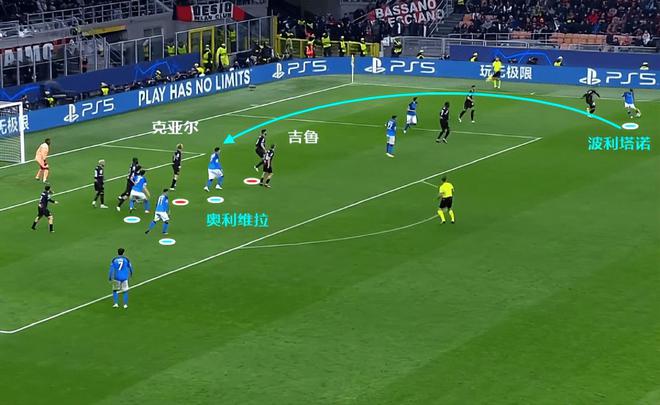 莱奥起速后,形成以点破面的效果,让那不勒斯的防线瞬间崩盘。