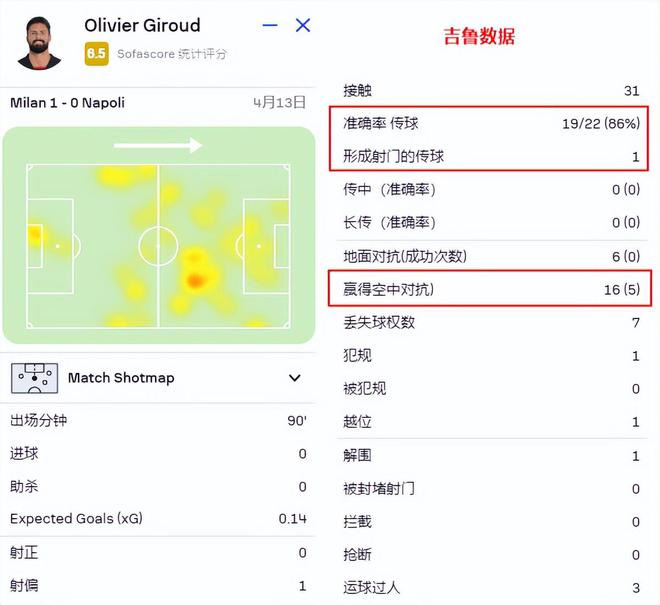 全场比赛的唯一进球,是皮奥利反击战术的成功贯彻。从执行细节来看,吉鲁的价值是极大的。