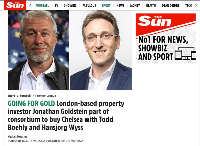 伯利收购切尔西期间,敏锐度极高的《太阳报》就对戈尔茨坦进行了报道
