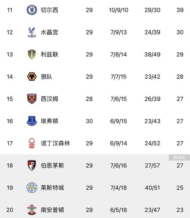 (英超积分榜:切尔西榜首 曼联第五)英超积分榜:曼联暂升第三领先热刺6分,埃弗顿仍与降级区同分