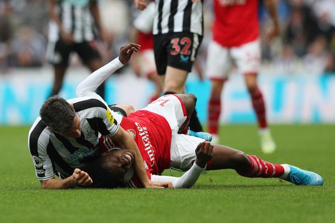 这次定位球机会源自于阿森纳在前场抢断吉马良斯得手,这其实就是纽卡的一大隐患: