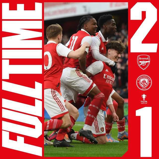 阿森纳u18在青年足总杯中2-1力克10人曼城,闯进了赛事的决赛!