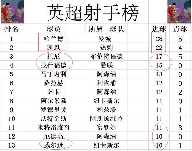 射手榜方面,哈兰德28球领跑,凯恩22球位列第3,托尼今天未能进球,还是17球排在第三。拉什福德今天破荒后倒是追了上来,他差托尼2球依然是排在第4。威尔逊梅开二度后,还差1球就能挤入前十。