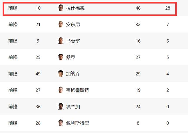 不过滕帅也非常头疼,因为全队除了拉什福德之外,就找不到第二个能稳定进球的前锋了。从上图可以看到,曼联的众多前锋,除了拉什福德之外,其他人都没进球上双,其中安东尼进7球,经常受伤的马夏尔有6球进账,此外桑乔5球,加纳乔4球,韦格霍斯特2球,埃兰加和佩里斯特里进球暂时都是0。曼联这7人相加,进球24个,甚至比拉什福德一人进球还少4个,实在让人无法接受。