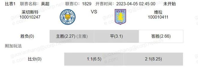 竞足 周二003英超莱切斯特VS维拉