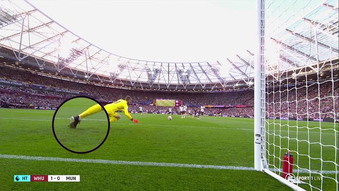 慢镜头显示,德赫亚没有把球扑出的原因,可能是他起跳时左脚在草皮上打滑,导致扑救的力量不足,没能把球挡出门外。出现这个巨大的失误后,32岁的西班牙老将面朝草地躺在曼联的禁区内,这球最终成为了西汉姆的制胜球。过去两个赛季,德赫亚9次失误导致失球,是所有门将中最多的。