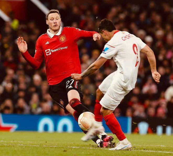 伤停补时阶段,恩内斯里禁区内头球攻门,皮球击中马奎尔之后反弹入网,塞维利亚队2-2绝平。