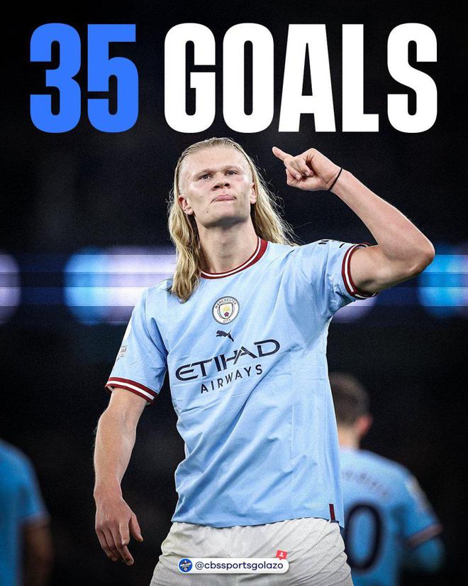 数据显示,第一,哈兰德本赛季已经在联赛里攻进35球,正式超越科尔和希勒,独占鳌头,创造了英超单赛季的历史纪录!