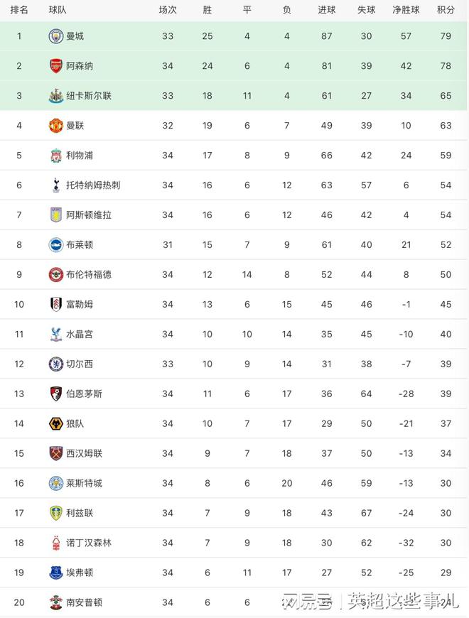 曼城主场3-0完胜西汉姆联,超越阿森纳重新登顶。上半场双方均无建树,罗德里的一次射门击中立柱弹出;第50分钟,马赫雷斯开出左侧任意球,阿克头球破门;第69分钟,格拉利什送出直塞,哈兰德挑射破门,打破英超单赛季进球纪录;第85分钟,福登凌空抽射变线破门,锁定了胜局,曼城延续连胜势头,重新登顶积分榜。