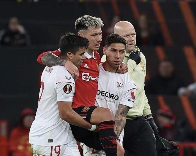 在北京时间4月14日凌晨结束的欧联杯1/4决赛首回合,英超豪门曼联在主场手握2-0领先优势的情况下,被塞维利亚连追2球,最终2-2握手言和。而这场平局也让曼联付出了惨痛的代价。两大主力中卫瓦拉内和利桑德罗-马丁内斯先后伤退,尤其是利马可能会赛季报销。