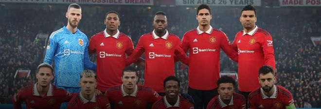 主场作战的曼联几乎排出最强阵容:利桑德罗-马丁内斯搭档瓦拉内拱卫德赫亚,马拉西亚和万比萨卡分居左右,卡塞米罗、B费和萨比策组成中场,前场三叉戟则是桑乔、安东尼和马夏尔。
