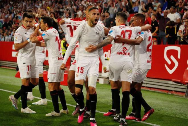 塞维首发:13-布努、19-阿库尼亚、23-马尔考、14-夸西(73‘ 7-苏索)、2-蒙铁尔(90’ 24-亚历杭德罗-戈麦斯)、6-古德利、20-费尔南多、21-奥利弗-托雷斯(46‘ 16-纳瓦斯)、10-拉基蒂奇、55-奥坎波斯、17-拉梅拉(66’ 15-恩内斯里)