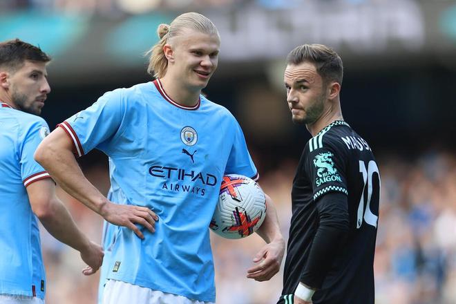 利物浦上轮逼平阿森纳,这也是给曼城送上了大礼,理论上来说,现在曼城和阿森纳一样,都能把握夺冠的主动权,双方都是只要剩下的比赛保持全胜就能夺冠。曼城今天主场对阵保级球队莱切斯特城,两个天作之合的人一连线,曼城只用半场就拿下比赛。开场仅5分钟,曼城右侧角球机会,B席尔瓦将球罚到后点,一顿混乱的头球争抢中,罗德里禁区内头球顶出来,斯通斯禁区弧顶处左脚凌空怒射,皮球应声入网,曼城1:0取得良好开局。仅仅再过5分钟,格拉利什左侧突破下底倒三角挑传回传中路,皮球击中恩迪迪手上,主裁因格兰吹罚了点球,哈兰德操刀主罚稳稳命中,曼城2:0领先,哈兰德追平了C罗英超单赛季进球数。