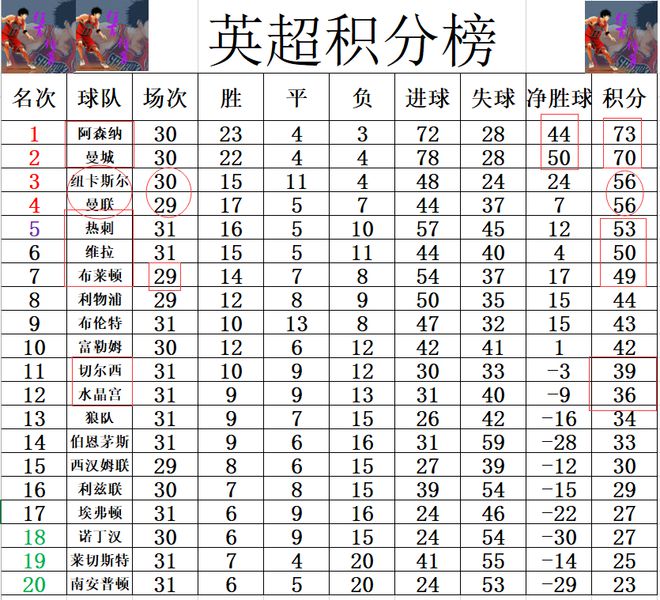 积分榜方面,曼城在轮次一样的情况下只差阿森纳3分,多了6个净胜球,冠军悬念非常大。纽卡斯尔昨晚脆败,他也就失去了前3的主动权,不过有热刺这样拉胯的追赶者,纽卡斯尔暂时前4还是没有问题的,曼联前四更是无忧。大胜纽卡斯尔的维拉近来气势如虹,他们现在都只差热刺3分。布莱顿霍夫也揍了一下人人都可以揍的切尔西,落后曼联7分排在第7,理论上他们追上曼联的机会都比热刺大。切尔西现在是真惨,今天在主场输球后,据悉他们的新老板伯利都生气地去了更衣室了,现在切尔西领跑下半区都有问题了,那边水晶宫换帅后3连胜,现在可只差切尔西3分了。