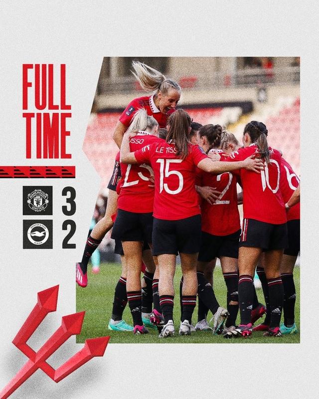 直播吧4月16日讯 英超女足足总杯半决赛,曼联以3-2的比分战胜布莱顿,成功闯入决赛,而这也是她们队史首次实现如此成就。本场比赛,曼联女足在第89分钟实现绝杀。