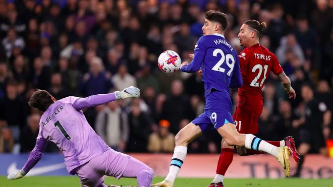 第11分钟,库利巴利的长传准确找到奇尔维尔,后者传中相当到位,哈弗茨的射门被阿利松挡出。